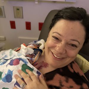 Farra’s employer was compassionate, but the only option they could offer for extended time off was unpaid leave. That wasn’t possible for Farra and her husband. So she set up a complete workstation in Olivia’s NICU room and worked from her daughter’s bedside—recovering from surgery, pumping, commuting, and preparing for her own major heart surgery brought on by pregnancy complications.
